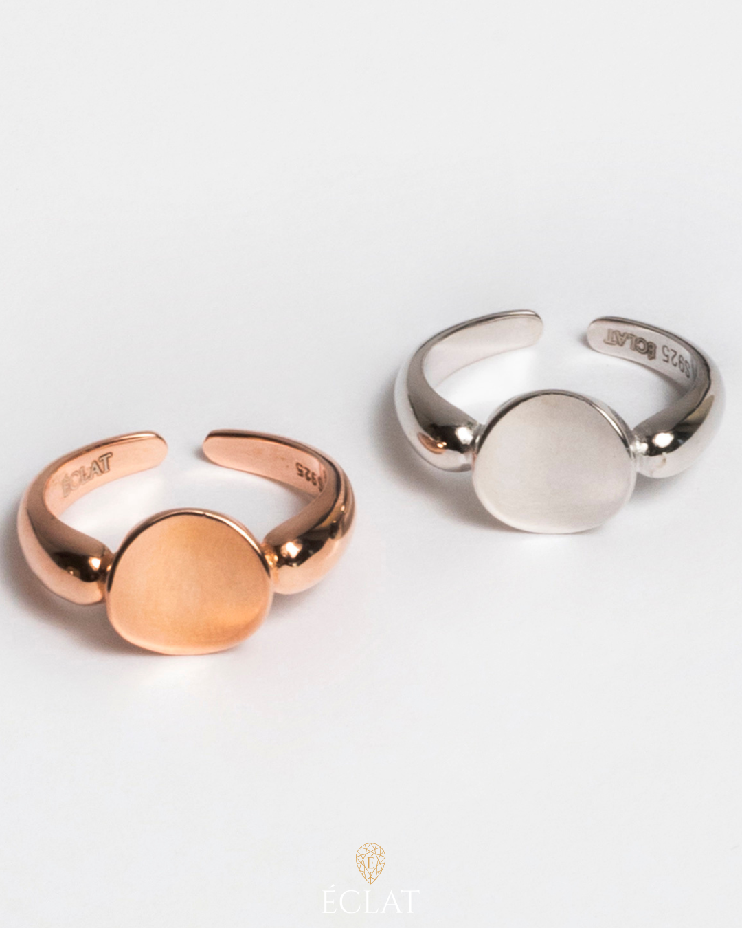 - Anello Aurora di ÉCLAT: Un anello aperto con una coppa piatta, realizzato in argento 925 lucido e brillante, disponibile in entrambe le finiture di placcatura in oro e argento rodiato. Questo anello elegante e distintivo è perfetto per qualsiasi occasione, donando un tocco di classe e raffinatezza al tuo stile. Aggiungi l'Anello Aurora alla tua collezione e fai una dichiarazione di moda unica!