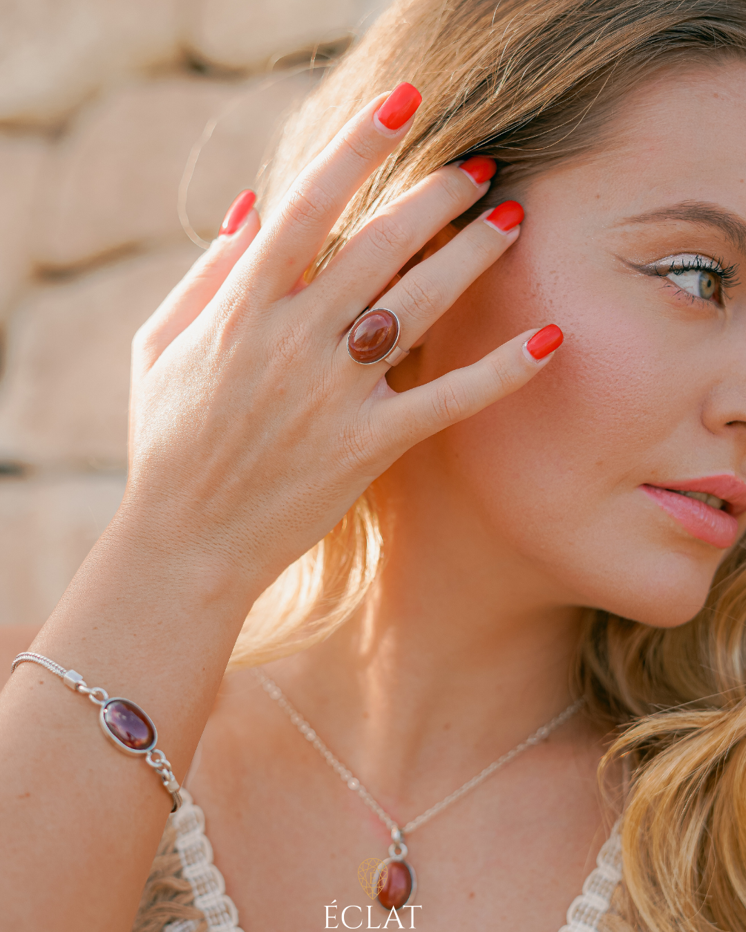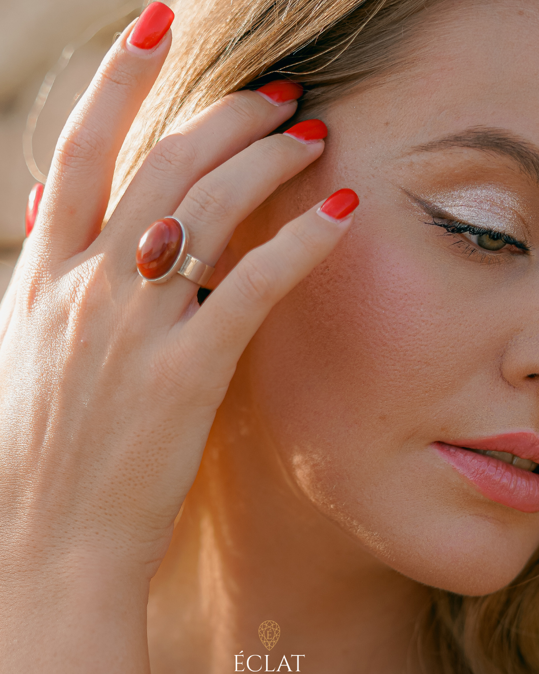 La sua forma classica e la finitura liscia permettono alla pietra di essere la vera protagonista, donando un vibrante tocco di colore terroso al tuo look. Ideale per chi cerca un gioiello con un'anima, perfetto per lo stile boho-chic, le serate estive o per aggiungere calore al tuo look quotidiano.