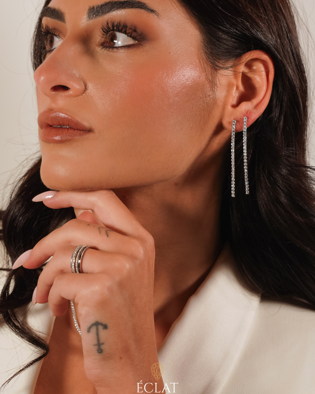 - Orecchini pendenti modello tennis in argento 925 placcato oro rosa o argento rodiato con zirconi bianchi, un connubio perfetto tra eleganza e look raffinato, un look non passare in osservato, perfetto per occasione importanti e per essere indossato con abiti eleganti.