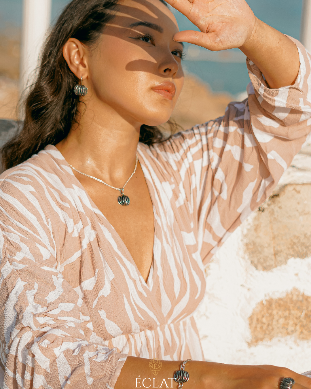 Gli orecchini "Guscio di Shali" sono un tributo alla città vecchia di Siwa, con le sue forme sinuose e l'architettura distintiva in fango e sale. Il design in argento artigianale evoca la forza e la bellezza di questi antichi "gusci" protettivi, che per secoli hanno custodito la vita e la cultura dell'oasi. Indossali per portare con te un pezzo di storia, un gioiello che celebra la resilienza e il fascino di un'eredità millenaria.